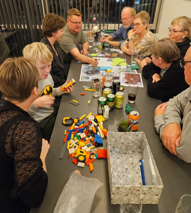 - En kasse med konkreter som billeder, LEGO, piberensere, farvekridt, tush, post-it, slik og et kort over området får mere kreative idegenreringer.
